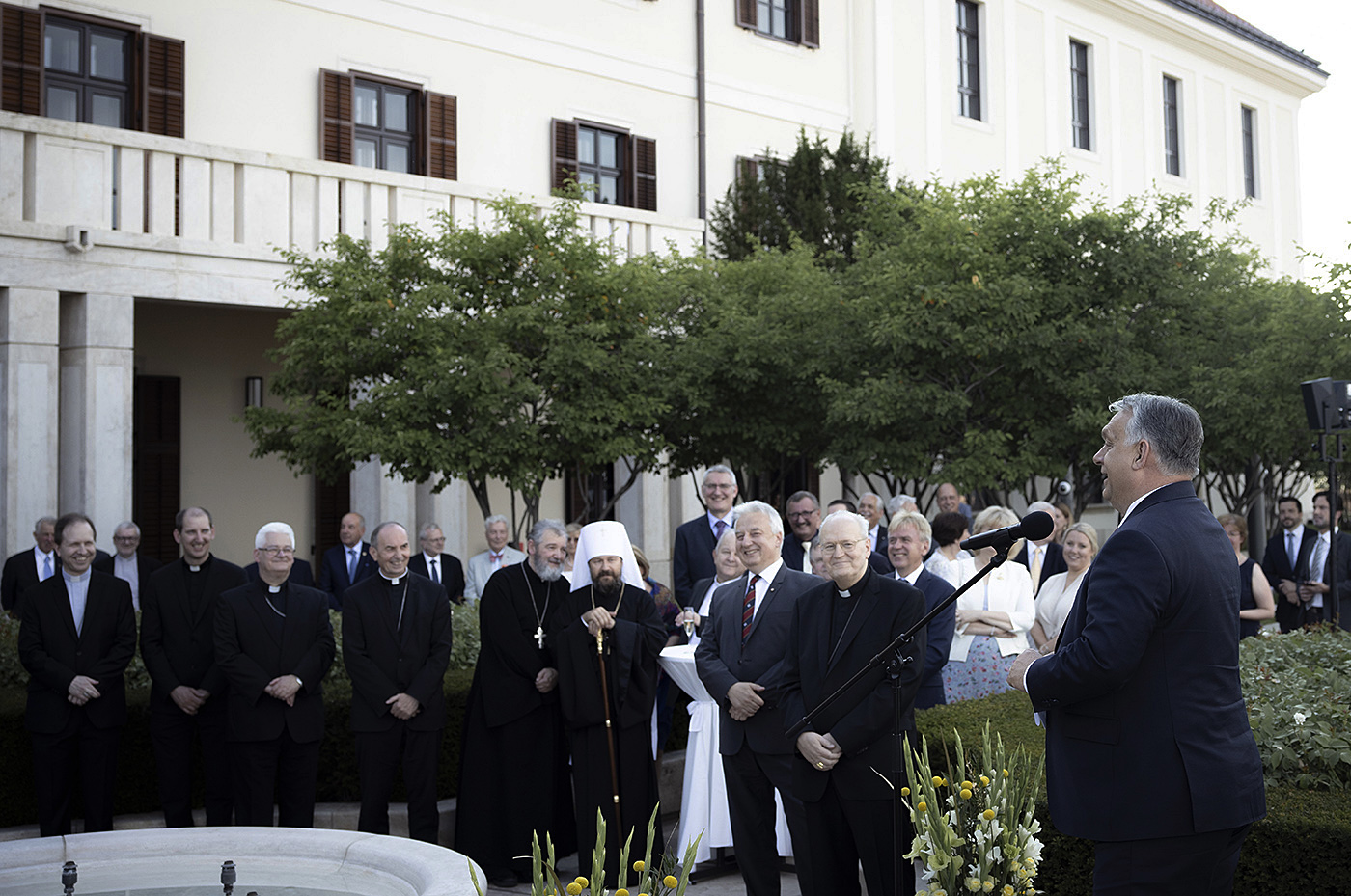 Orbán Viktor miniszterelnök köszöntő beszédében méltatta az egyházi vezető szolgálatát, és arra kérte Erdő Pétert, hogy továbbra is szeresse és támogassa Magyarországot, tüntesse ki figyelmével a világi vezetőket. “Tudjuk, hogy a járványok, a háborúk, a békétlenség korszakába léptünk, és nyilvánvaló, hogy ha nem lesz keresztény egység a béke és a keresztény örökség megvédése kérdésében, akkor el fogunk veszni. A magyar nemzet csak békében tud megmaradni, ehhez kérjük a bíboros úr, valamint katolikus, ortodox és protestáns testvéreink segítségét is” – hangoztatta a miniszterelnök.